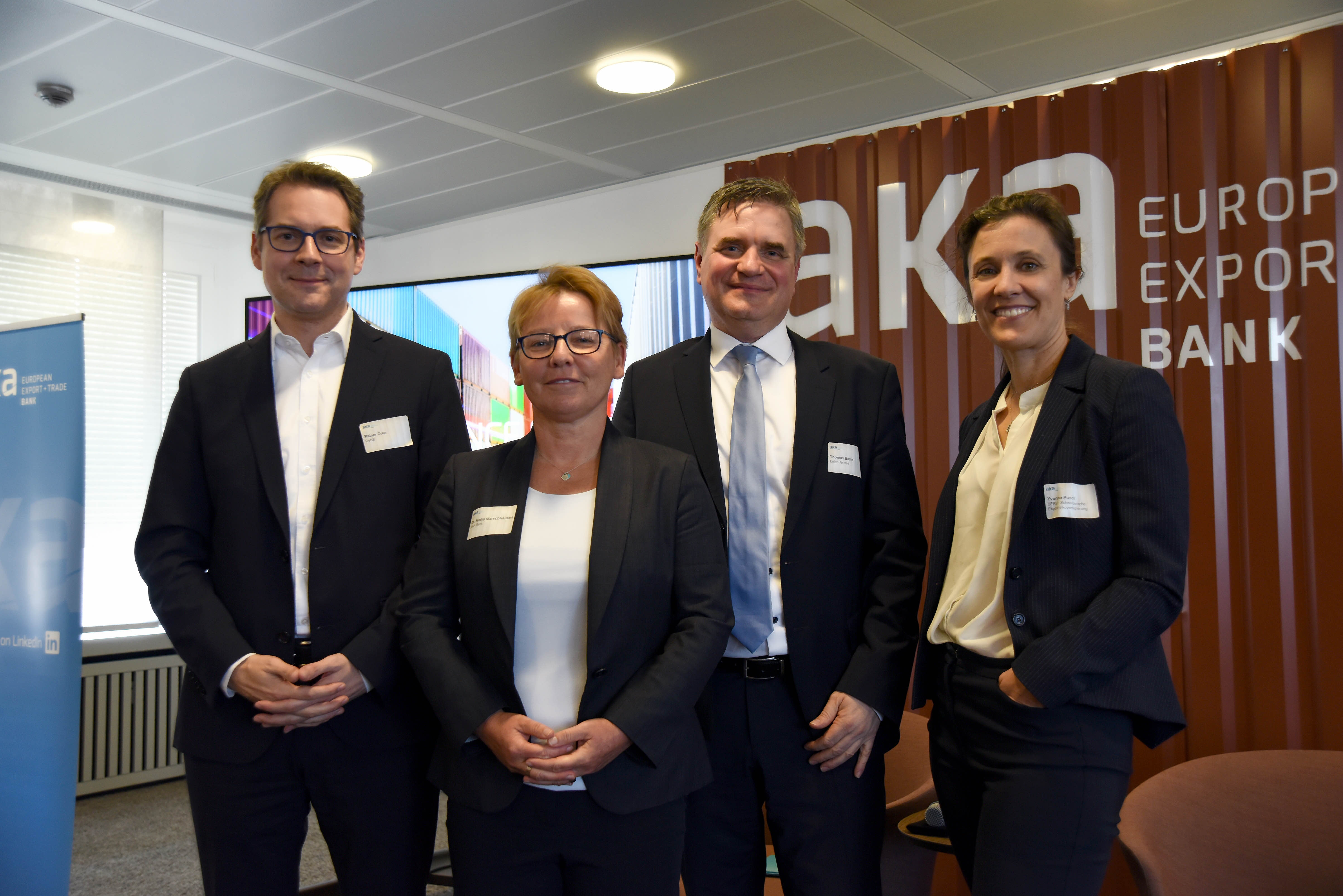 Dr. Nadja Marschhausen (Chief Operating Officer, AKA Bank), moderierte die Expertenrunde zum Thema ECA: Was bringt 2025 an Neuerungen für die DACH-Region. Über die Frage: Was können wir gemeinsam tun, um die stürmischen Zeiten zu überstehen, sprach sie mit Rainer Dreo von der OeKB, Yvonne Pusch von SERV und Thomas Baum von Euler Hermes. Gibt es einen Perspektivwechsel bei den ECAs und braucht es für jede Not ein Produkt? Diese Fragestellungen beleuchteten die Teilnehmer aus ihrer jeweiligen Erfahrung.