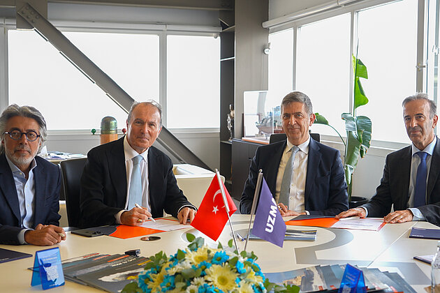 Die von Euler Hermes unterstützte 10-jährige Fazilität wurde von A. Noyan Altuğ (Vorstandsvorsitzender der UZMAR Gruppe), Marck Wengrzik (CEO der AKA) und Yücel Yilmaz (Direktor Export & Agency Finance der AKA) unterzeichnet.