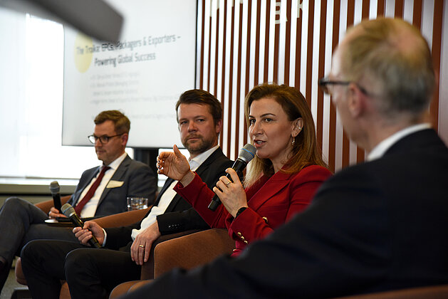 Matthias Wietbrock (Head of Export & Agency Finance, AKA Bank) leitete das Panel mit dem Titel „The Troika: EPC´s, Packagers, & Exporteurs - Powering Global Success. In einem lebhaften Austausch mit Dr. Derya Deniz Yilmaz (CFO, Agaoglu Group), Dr. Manuel Probst (Managing Director, Jebsen & Jessen) und Holger Korte (Head of Export & Project Finance, Big Dutchman) formulierten die Panelisten, wie sie auf die Marktdynamiken reagieren und welche Anforderungen an Finanzinstrumente essenziell sind.